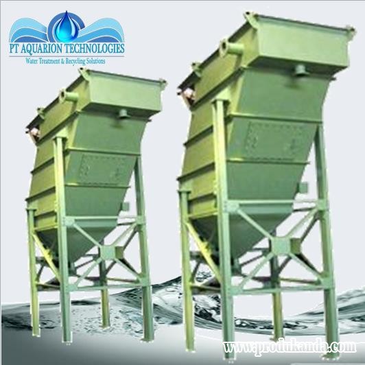 Air dialirkan melalui bagian bawah incline plate, perlahan air mengalir ke atas, kemudian gumpalan flok akan jatuh menempel pada bagian bawah tiap plat sedangkan air yang terolah mengalir keatas dan meluber menuju saluran weir yang akan mengalir menuju outlet tangki sedimentasi.